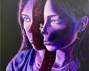 Through this I’ve learned two things. Firstly, “headspace” does not define character. To this day I still can’t anchor my mind in the present as much as I wish I could, but I have also come to accept that there’s no “correct” way to experience reality. Instead of trying to drown out what I see and feel, I can turn it into something tangible and even beautiful, which is what I wanted to pursue through my work. This led me to the second of my realizations: while others may not be able to split my head open and peer inside, many have had experiences akin to mine, providing me both emotional solidarity and inspiration for my own work in portraying dissociation’s manifestations. Our minds are so intrinsically unique, and each person’s brain presents feelings in different ways, which sparked me to hear and visualize the thoughts of those around me. This introspective experience has left me with both an artistic concept and an investigation of craft, while simultaneously leading me through an investigation of “self” and the mysteriously macabre brains that rest inside of our skulls.